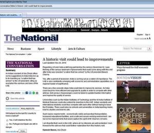 My Letters – THE NATIONAL – Dt. 24.11.2010 – A historic visit could lead to improvements