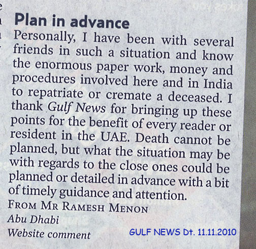 My Letters – GULF NEWS Dt. 11.11.2010 – Plan in Advance
