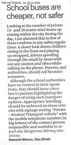My Letters – THE NATIONAL – Dt. 02.11.2010 – School buses are cheaper, not safer