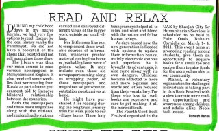 DURING my childhood days in my native Kerala, we had very few options to read. Except for the local library run by the Panchayat, we did not have a bookstall or the shops that existed did not sell magazines those days.