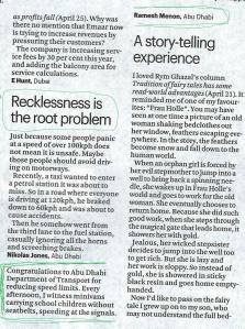 Recklessness is the root problem – My Letters – THE NATIONAL Dt. 26.04.2011