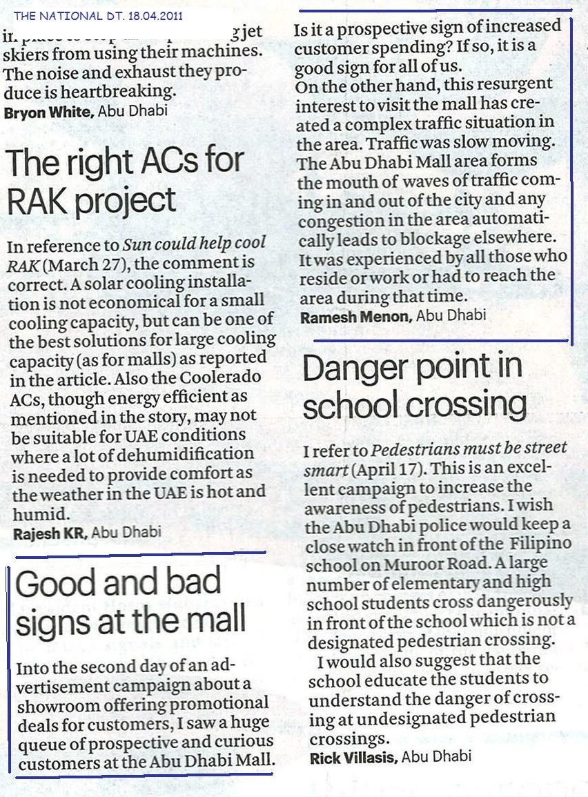Good and bad signs at the mall – My Letters – THE NATIONAL Dt. 18.04.2011