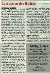 KT is my Choice – My Letters – Khaleej Times Dt. 17.04.2011
