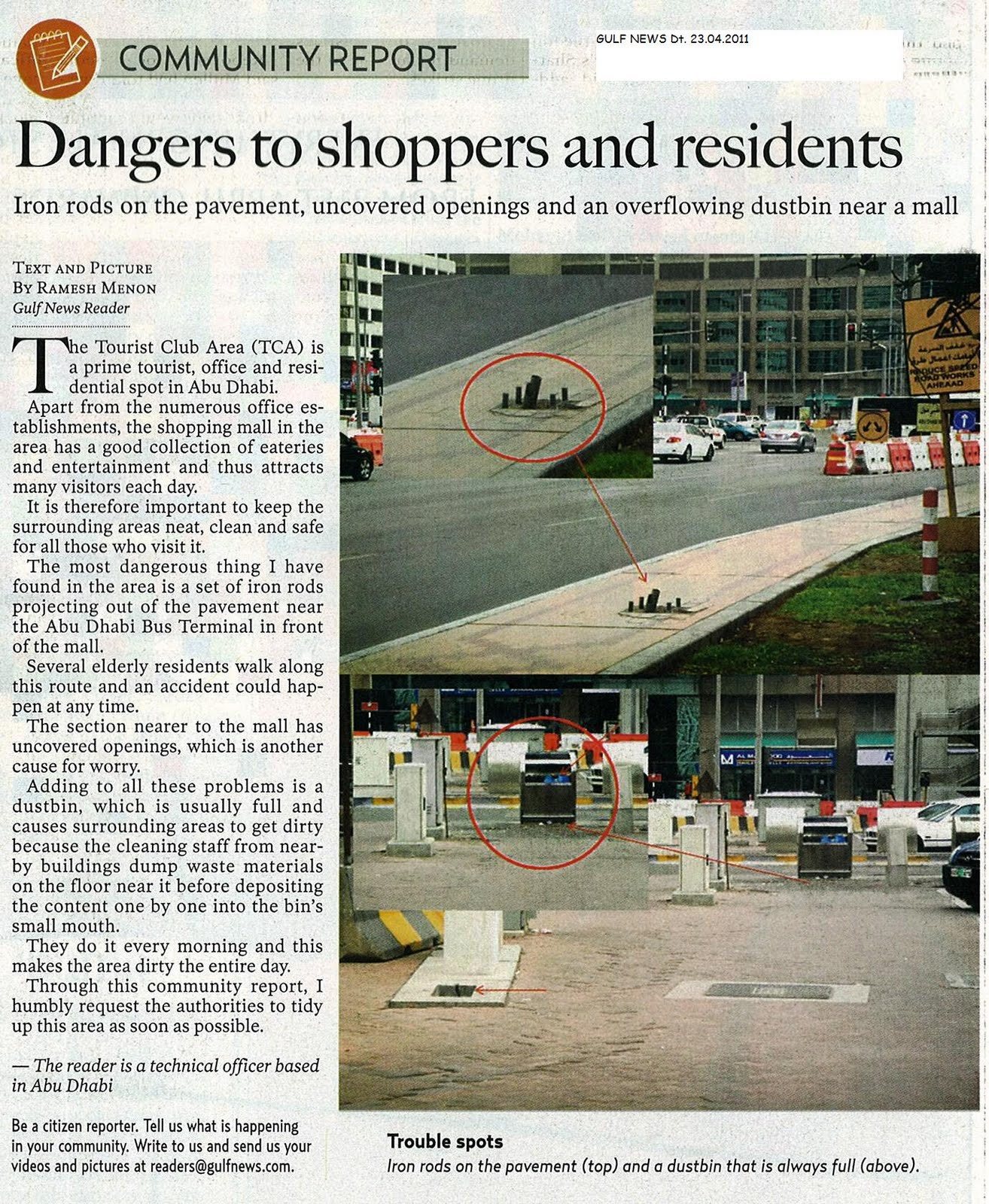 Dangers to shoppers and residents – Commuity Report – Gulf News Dt. 23.04.2011