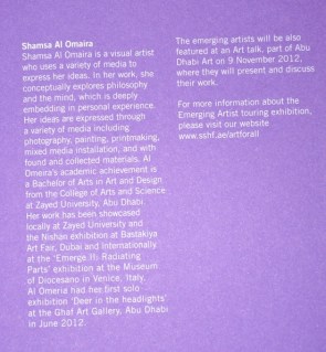 For more information about Emerging Artist touring exhibition, please visit:www.sshf.ae//artforall