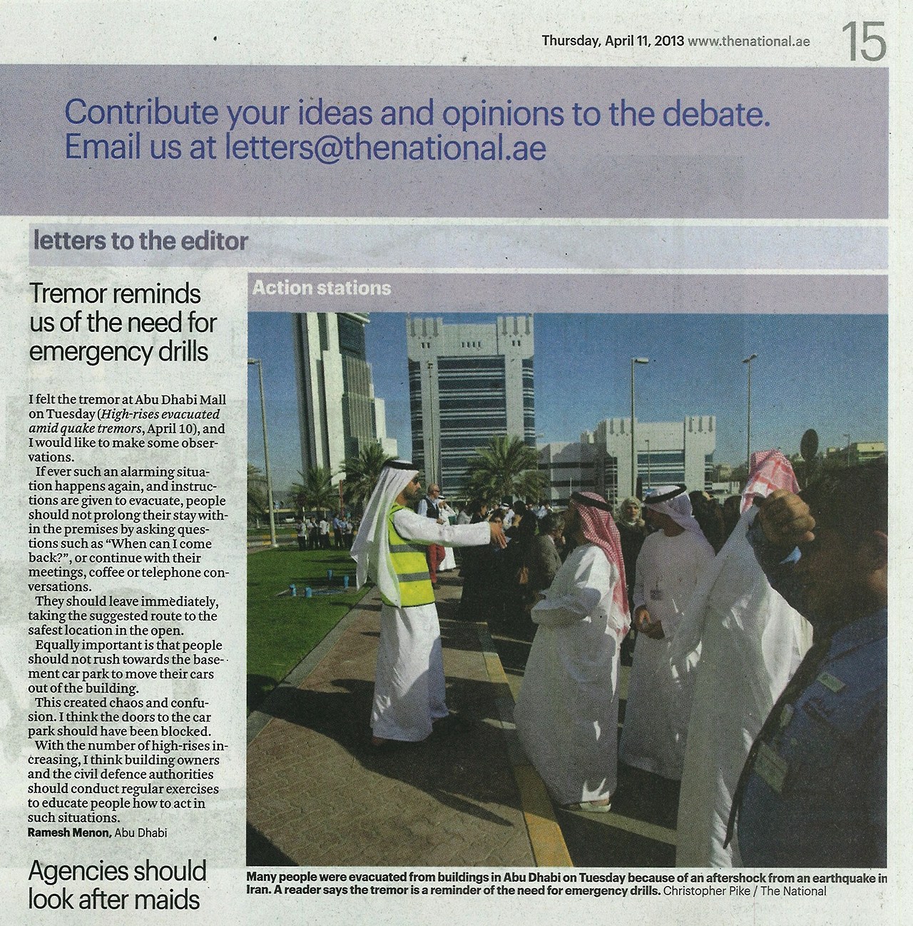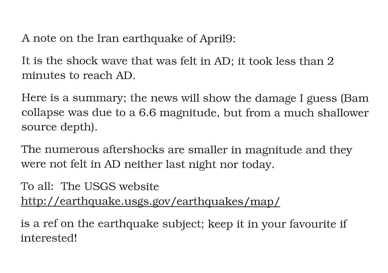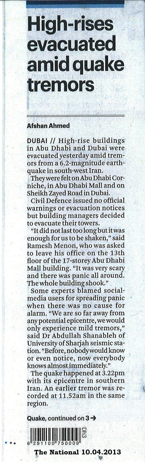 I felt the tremor at Abu Dhabi Mall on Tuesday (High-rises evacuated amid quake tremors, April 10), and I would like to make some observations.