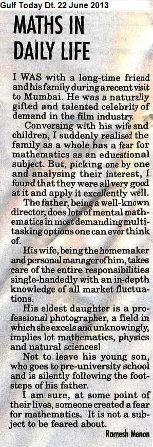 Noble path – Short Take – Gulf Today Dt 13 July 2013