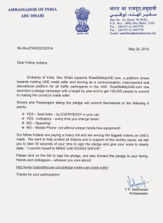 Appending below is the support and call by the Ambassador of India, H.E. T.P. Seetharam in support of this initiative.