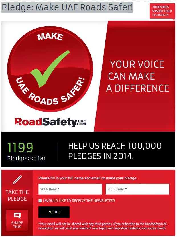 We need YOUR VOICE, and the voices of all road traffic participants of the UAE! We need your voice to clearly state: ‘I commit myself to MAKE UAE’s ROADS SAFER!’ – and to sign our pledge!