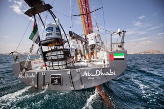 Donning Abu Dhabi crew uniforms for the second consecutive time are under-30 helmsman and trimmer Adil Khalid (United Arab Emirates), navigator and helmsman Simon Fisher (Great Britain) and bowman Justin Slattery(Ireland).