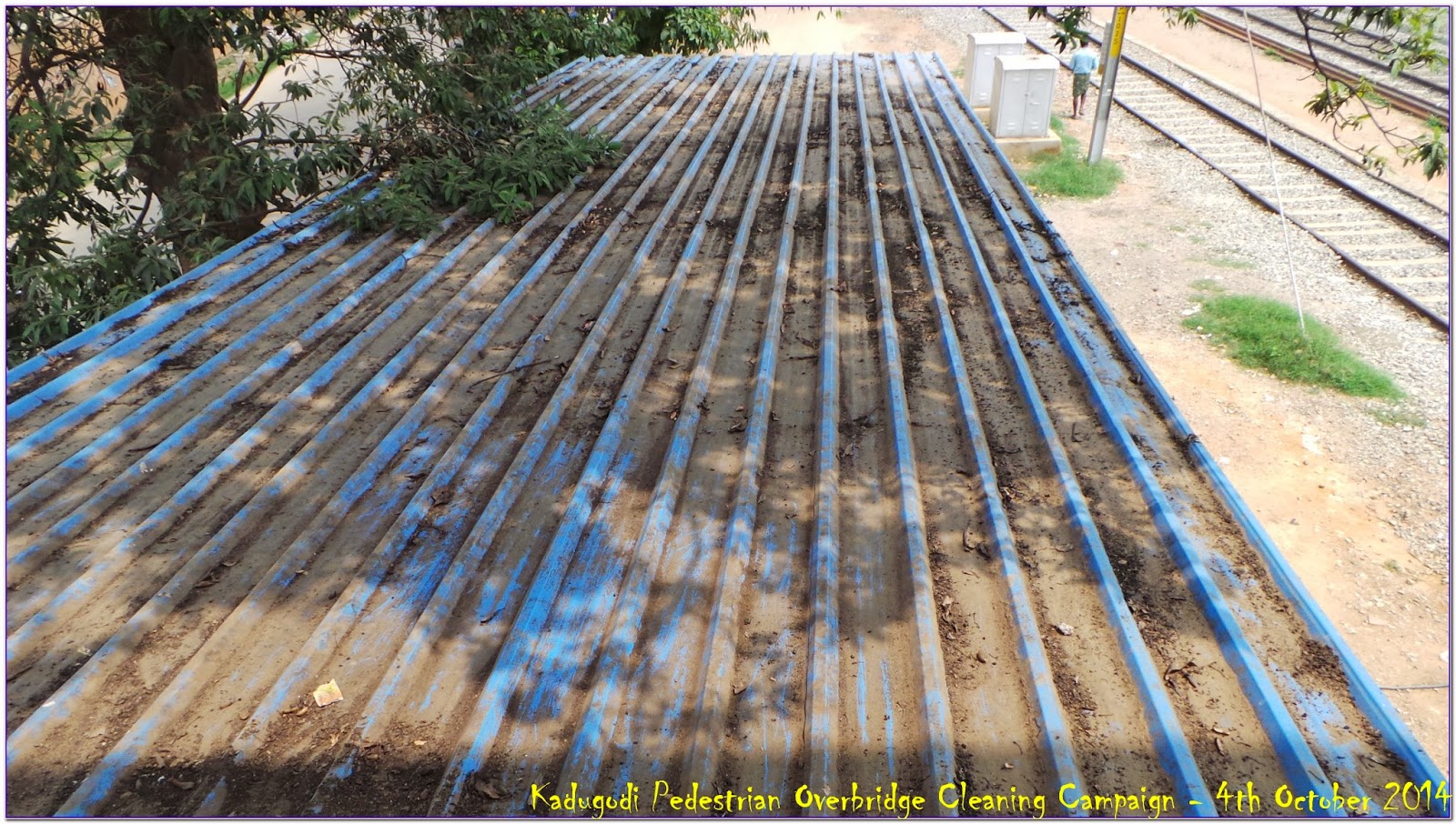 We Did It! Thanks to the support of all those who volunteered, we did a campaign to clean the pedestrian overbridge at Kadugodi, Whitefield Bangalore. Starting at 09:30, it took us 3:30 hours to complete the job. Sincere thanks to Amit Das, Jayanth Bhat, Deepika Jayanth Bhat, Rajashree Menon and Suraj Menon. Of course, a respectable mention and thanks to Sri Anand Sivaram, Manager, Whitefield Railway Station and staff of Kadugodi Police Station.