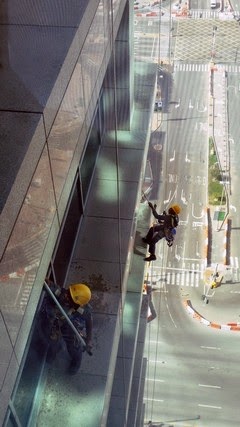 I have seen workers in harnesses installing billboards or putting stickers on high-rises. But when I looked closely, I noticed that most of them did not have adequate safety gear. This has happened on more than two occasions.