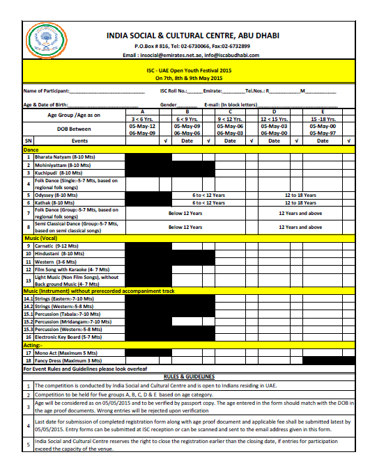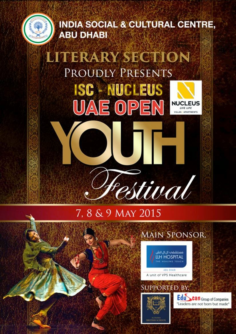 India Social & Cultural Centre (ISC Abu Dhabi), the premier socio-cultural organization for expatriate Indians in UAE, is organizing UAE OPEN YOUTH FESTIVAL 2015 on 7th, 8th and 9th of May 2015, with a large number of School students’ participation from all over UAE.