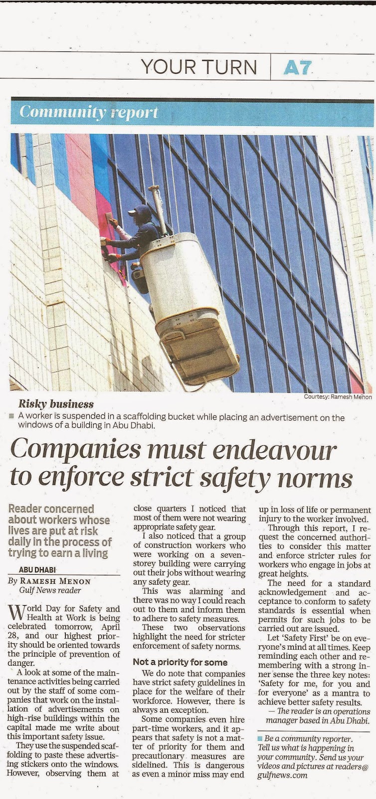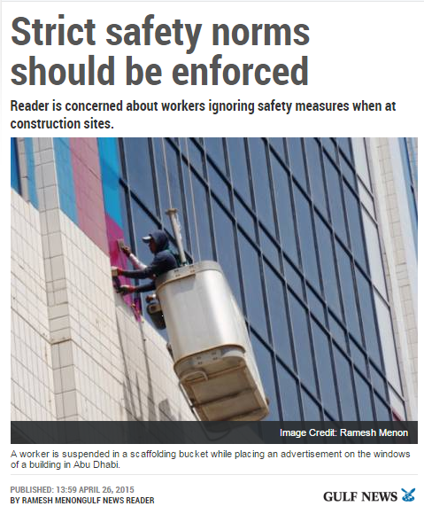 The startled witness to this casual disregard of safety was Ramesh Menon, a technical officer at an oil firm who recorded it with his camera then alerted both the building management and also The National.