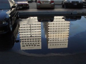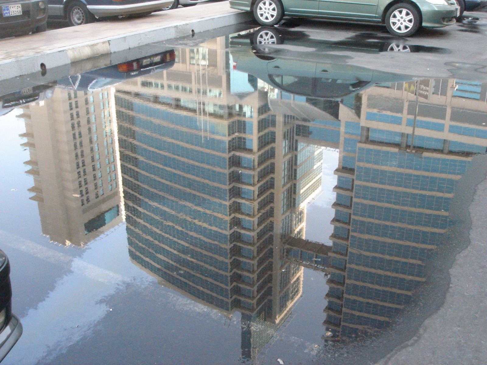 I am always fascinated by reflections. At the same time I enjoy reflex actions too. A disturbance at work this morning prolonged beyond the normal time. As usual I thought of creating an opportunity out of it and walked towards my car in the parking lot. It became a wonderful opportunity to capture these beautiful buildings around and the source which created this water clogging.