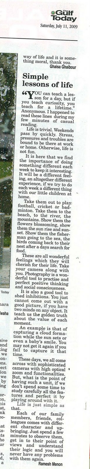 My Letters – GULF TODAY – Simple lessons of life