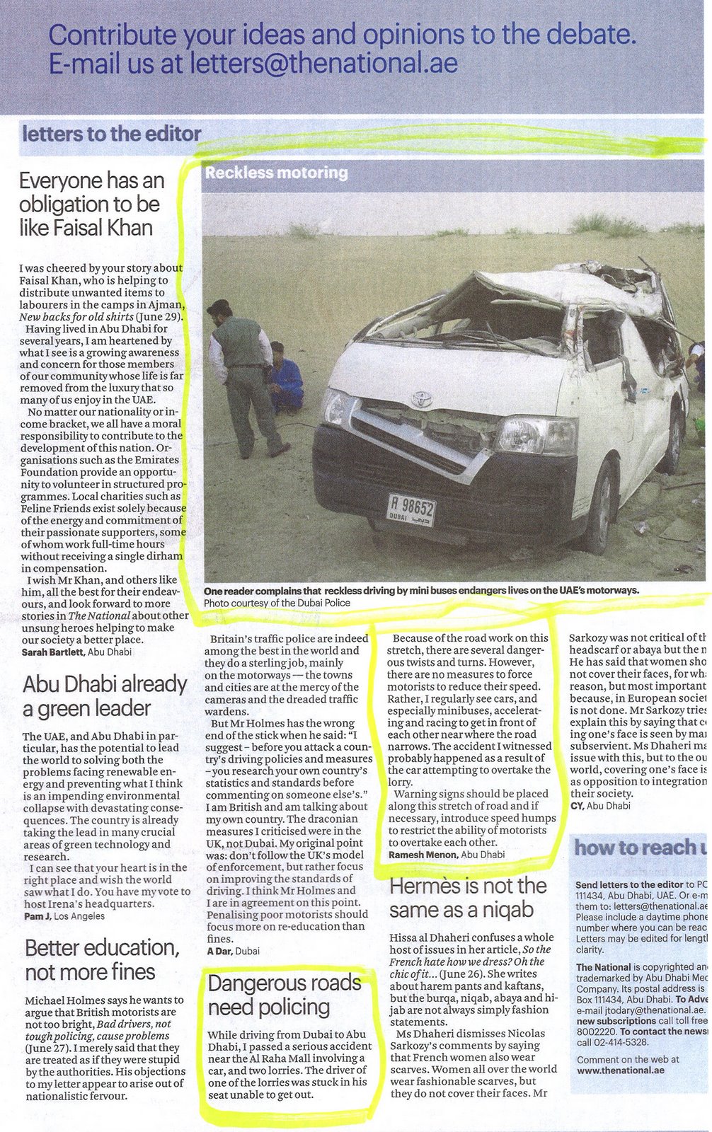 My Letters – THE NATIONAL – Dangerous roads need policing