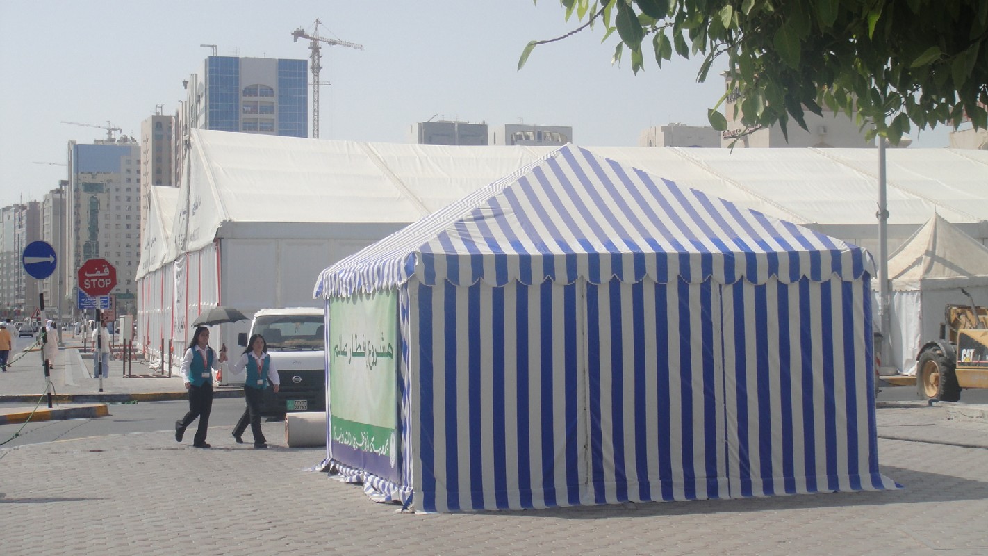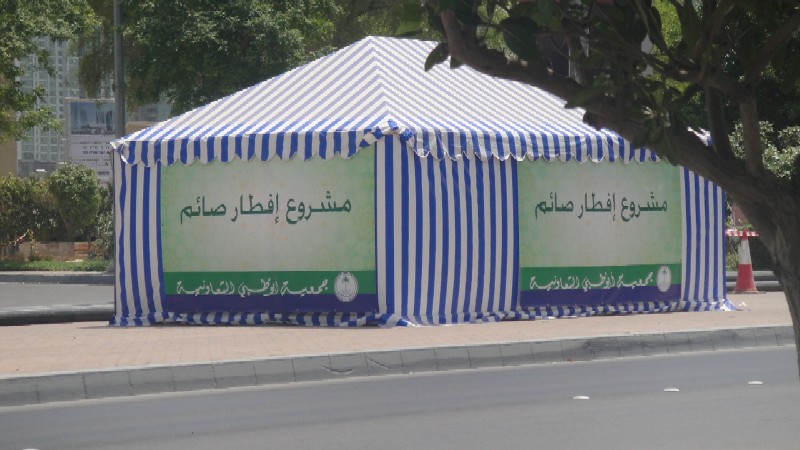 A supply tent by Abu Dhabi co-operative society to distribute free Iftar packets during Ramadan