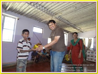 Wednesday, 15th August 2012, was indeed a divine day for us. An unexpected and unplanned opportunity to be with the children of Sai Ashrayadham, Kadugodi, Bangalore. We were delighted to be with them and serve them lunch and see their innocent and pure mind blossom with beautiful smile on their faces. And there was a winner too. Toshib, came back from school with several prizes for his overall talents.
