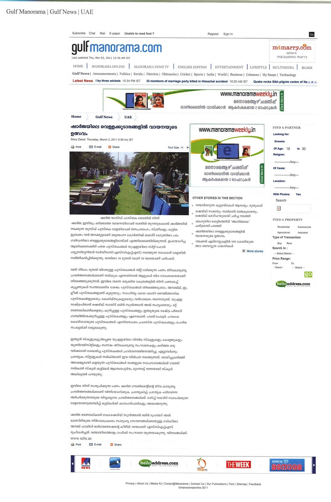 Online news coverage of 4th Used Book Fair at Sharjah by Malayala Manorama news.