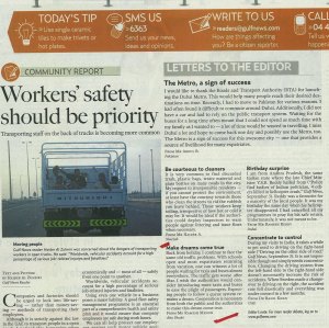 It is interesting to participate in competitions as it gives an idea to where we stand, even if we ends up as a loser. With this always in mind, I regularly participate in various opportunities in the field of photography, writing, drawing or playing percussion instruments or even sports to make a self assessment. I was surprised to receive an sms as earl as 6:30 am yesterday from my friends and emails also after seeing the above photos coming in print in the Gulf News Daily. There was no mention, other than Ramesh Menon and Abu Dhabi and of course their title “extremely active community journalist”. As one of them said to me quoting the old saying from Mahabharatha – if it is Kheechaka then, it is Bhima who killed him, we were sure it is you only, whether it is a photo or an article for the need of public facilities.