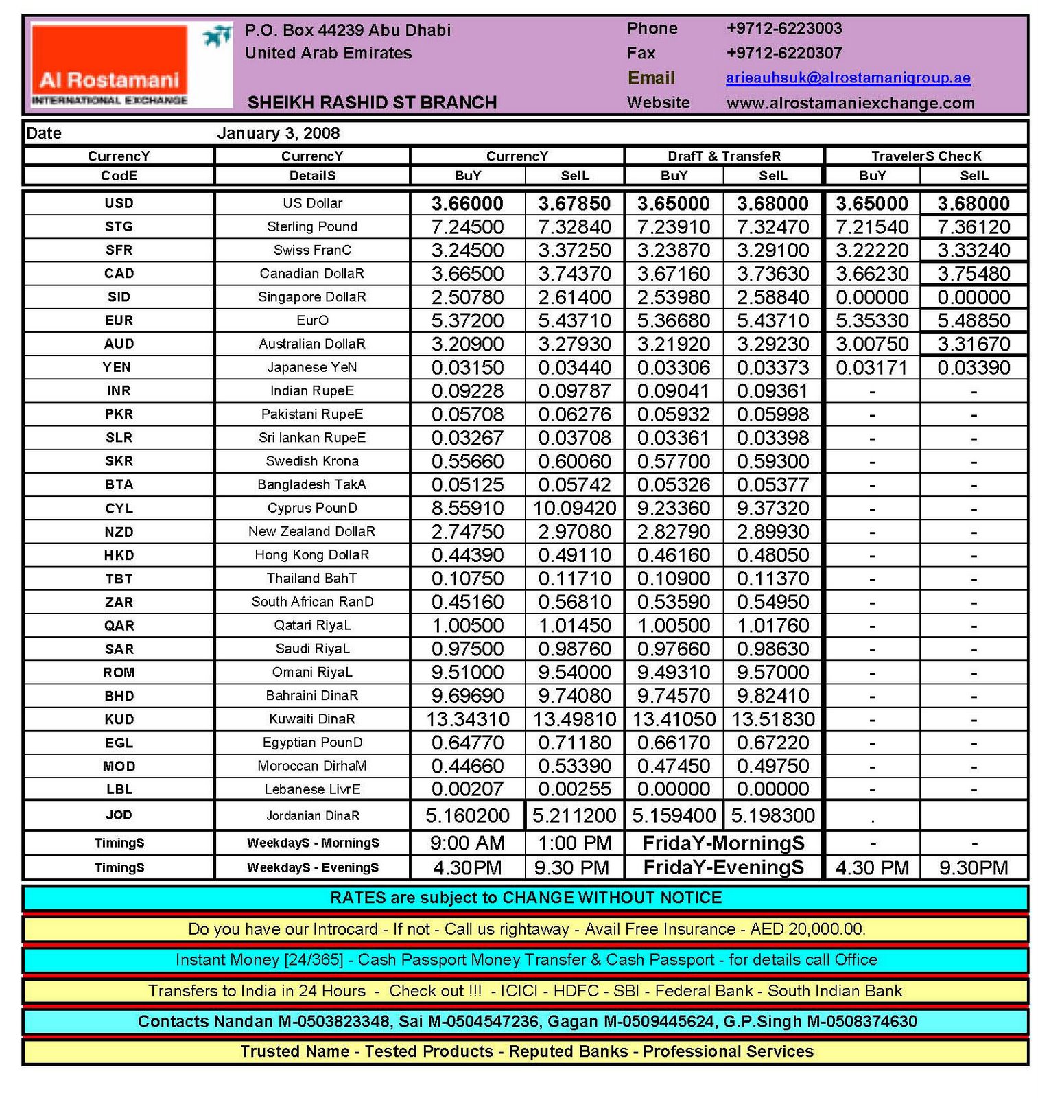 Daily Exchange Rates – Thursday, 03 January 2008