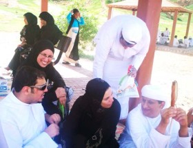 Among the group is Khalfan Bin Daher, who was demonstrating his knowledge of guessing people’s age and skin colour by feeling their hands. In a few minutes he was able to correctly guess the age of the person next to him. “I don’t know how people look like, but through the sense of touch I can find out about the person’s age and skin colour,” said the 18-year-old.