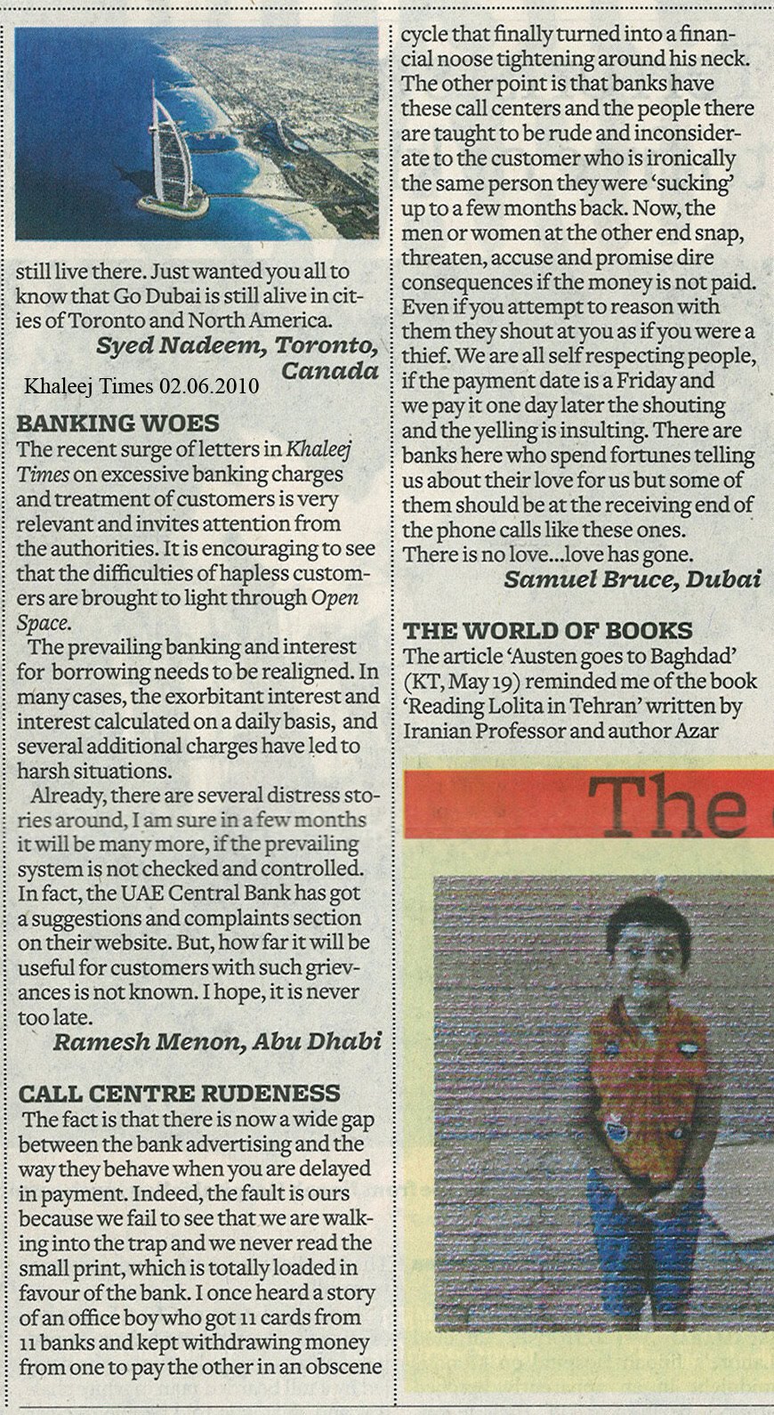 My Letters – Khaleej Times – 02.06.2010 – Banking woes