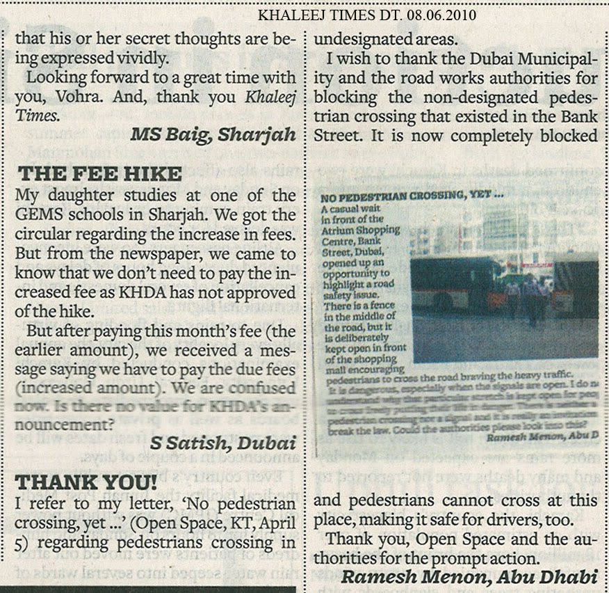 My Letters – Khaleej Times Dt. 16.07.2010 – Road Signs