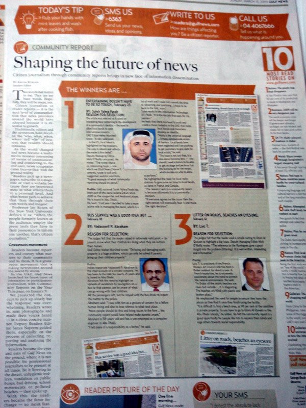 Immediately after the visit, I send the story to Gulf News for their new section Community Report, with a different version. Yeah, English is one language which we can manipulate according to our moods and swings. Thank you Gulf News for accepting it and continuing to allow me to test my writing skills. Together, it proves, You too can make Us create a world of difference.