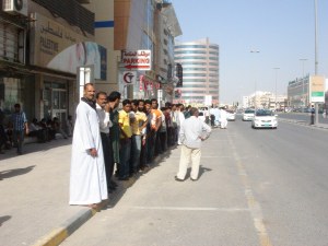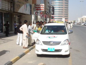 The on-going road development works and the parking worries give me occasional opportunities these days to travel by the Abu Dhabi Bus or Taxi during office hours and outside. I consider this as an opportunity to move away from my driving responsibilities and also from the crazy road behaviours for some time and opportunistically utilise the view and life around from a different angle and height. However, many times, these waiting, ends up in frustration looking at the senseless behaviour of fellow road users to rush in for the taxi or the bus, irrespective of others who have been waiting there before them. Like the situation in the movie Saveage Harvest, it reminds me of a predatory instinct in human being each time it happens. However, a chance drive to a city suburb in Ajman on a Friday afternoon made me realise it is not the case everywhere. I was waiting after a sumptuous lunch from a restaurant inside my car and noticed this act of decency by a group of ordinary passengers most of them labourers working in camps. As usual, my camera did not miss the opportunity of recording a series of precious acts and opportunity for me to promote TQM and Positive Thinking values around. Watching them, I thought, how good it be, if the same social conscience and sense prevailed with the fellow users in the more cosmopolitan cities like Abu Dhabi and Dubai.