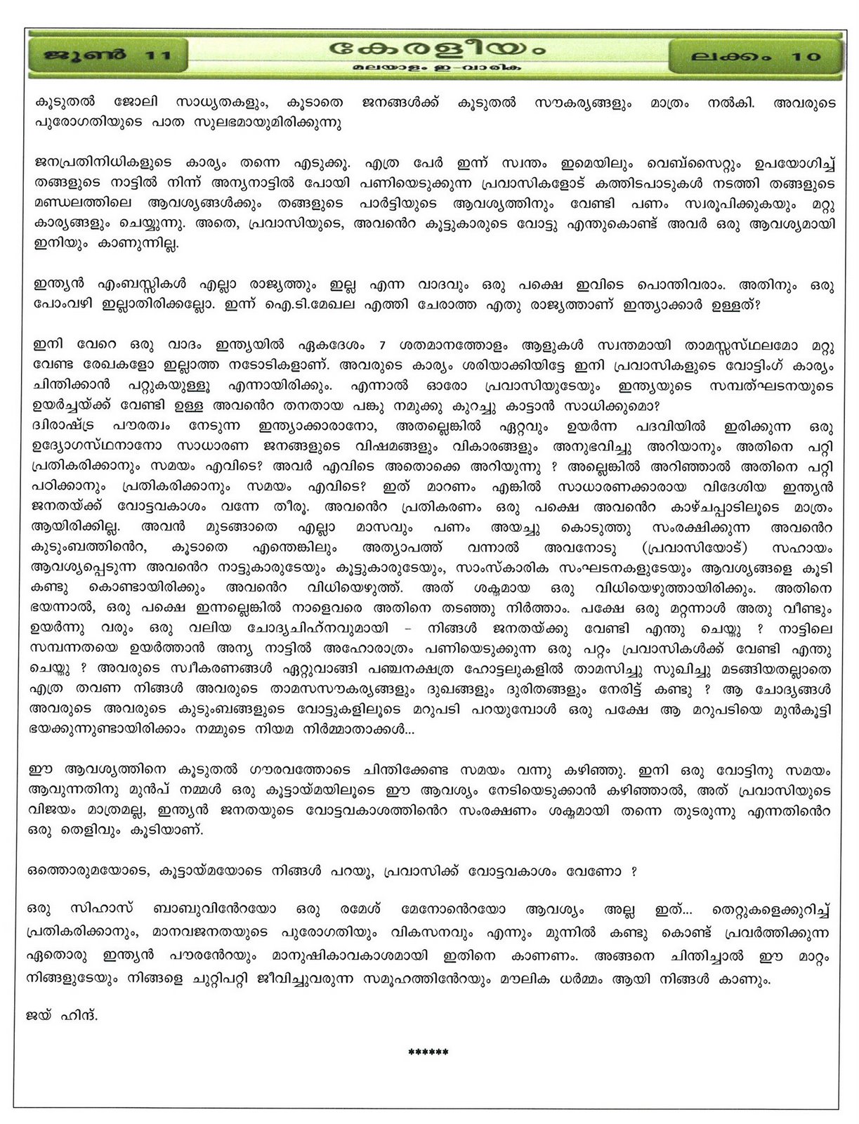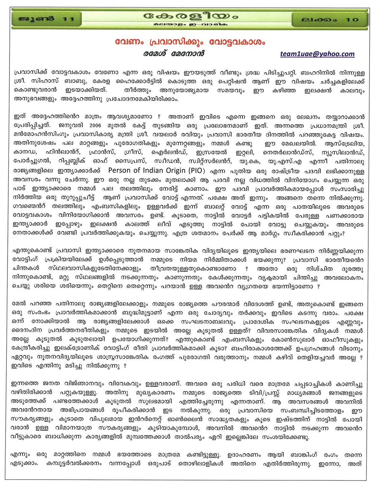 പ്രവാസിക്ക് വോട്ടവകാശം വേണോ എന്നാ ചോദ്യത്തിന് :