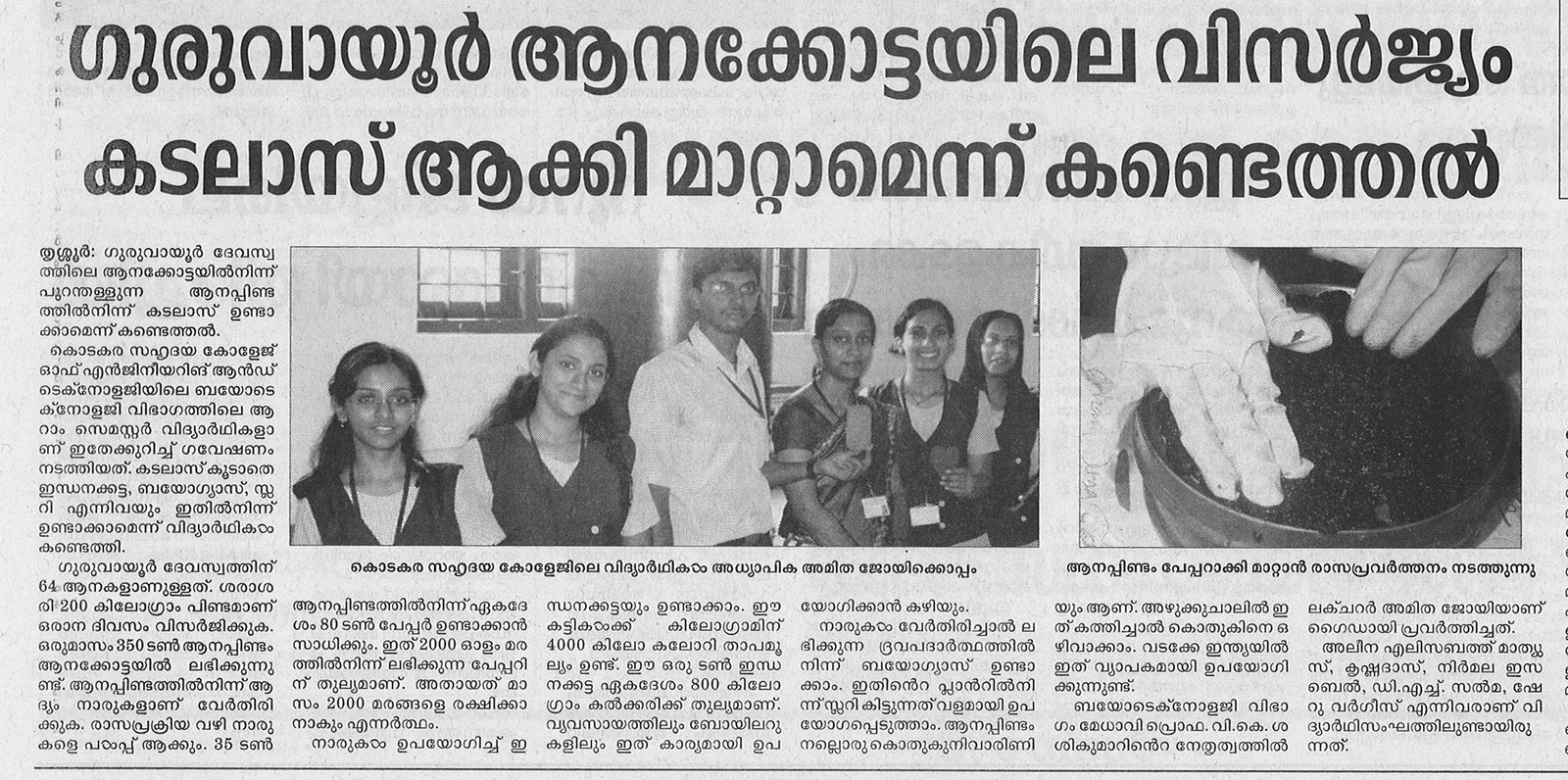 ഗുരുവായൂര് ആനക്കോട്ടയിലെ വിസ്സര്ജ്യം കടലാസ്സാക്കി മാറ്റാമെന്ന് കണ്ടെത്തല്