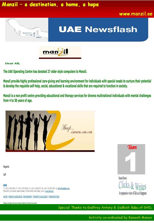 With whole-hearted support from the organisation GHD, Abu Dhabi and their senior management and those two staff members, we were able to send the PCs to Manzil before the Eid holidays.
