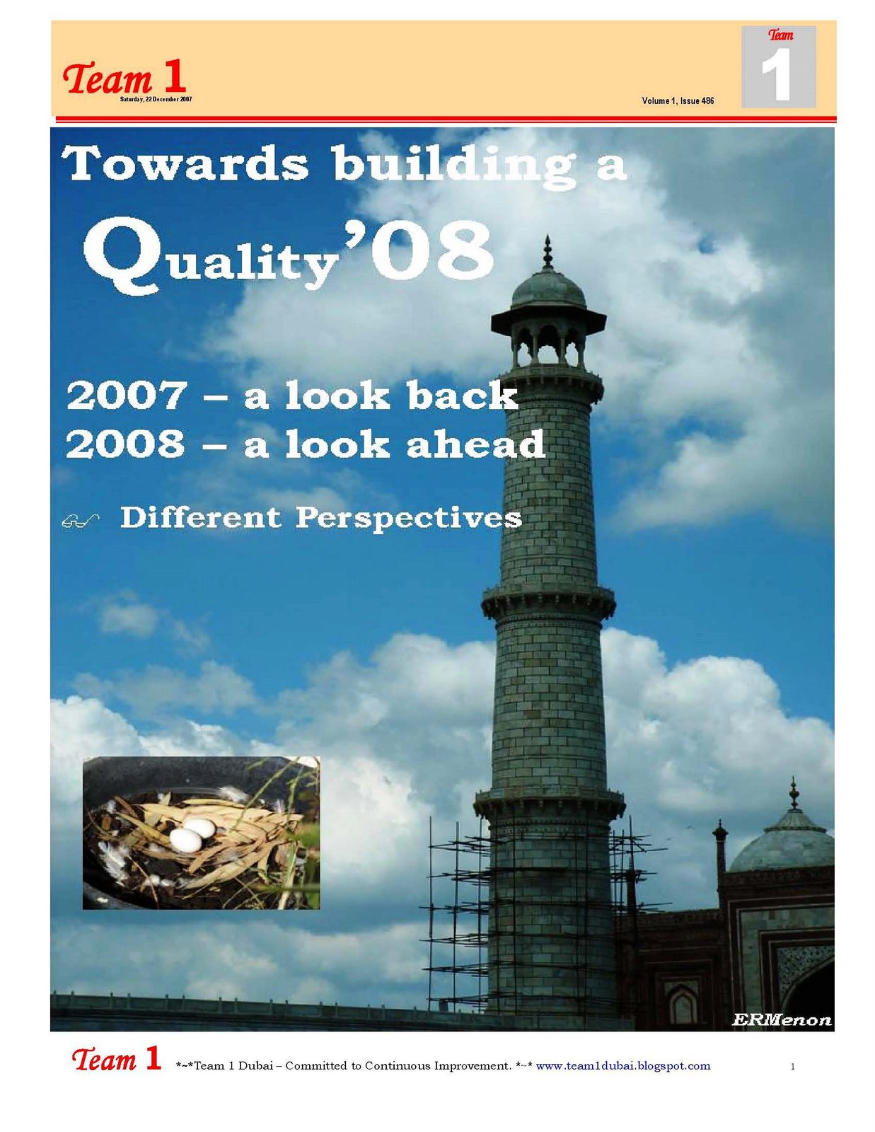 Team 1 newsletter – Issue 486 – “Towards Building a Quality ’08” is ready and available. Those readers who wish to obtain a personal copy of the same in pdf version, please email us at team1dubai@gmail.com