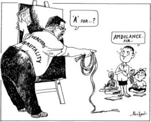 Another case, I had to watch with astonishment, happened at the Delhi airport. Near the conveyor belt, while waiting for the baggage to arrive, I found two well dressed and highly placed government employees, on their way back from a foreign tour – obviously government sponsored and intended to learn and study the developments abroad – fighting out to grab a trolley, which was the only one available at that point. They forgot all what they have seen, learnt, and wanted to introduce from their tour and returned back to their village level in their language usage. Here too, everyone was silent spectators. None to comment, none to control or react. Here again, there was a group of school children on their educational tour to learn India and it’s culture was there as spectators witnessing their first on hand Indian experience, straight out from their airplane. As I wrote earlier and as I repeatedly write here and will write again, we all react or respond only when something is pointed towards us or affecting us. All other happenings are to be silently watched.
