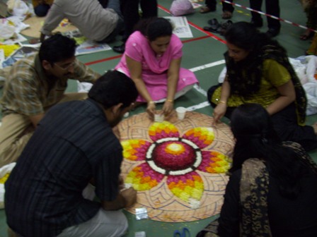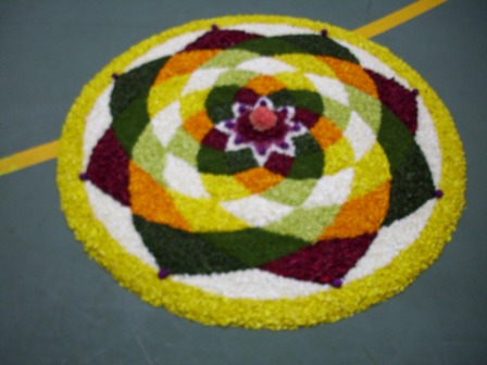 Onam 2011 – Pookkalam arranged by volunteers at Bangalore in connection with Ganesh Chathurthi celebrations and Onam festivals 2011.