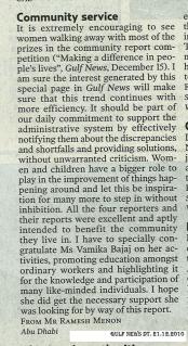 My Letters – GULF NEWS – Dt. 21.12.2010 – Community Service