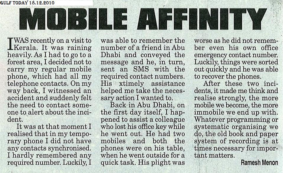 Short Take – GULF TODAY – Dt. 18.12.2010 – Mobile Affinity