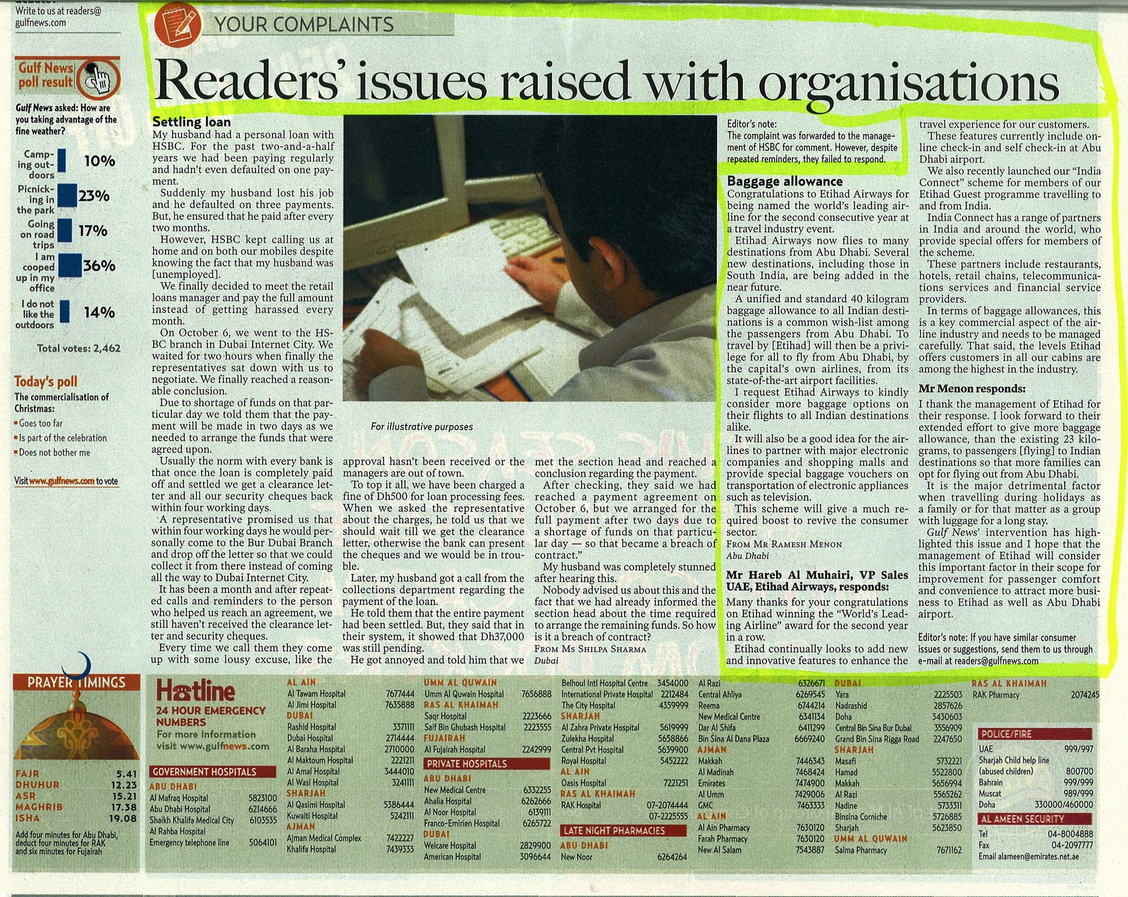 My Letters – GULF NEWS Dt. 24.12.2010 – Baggage allowance
