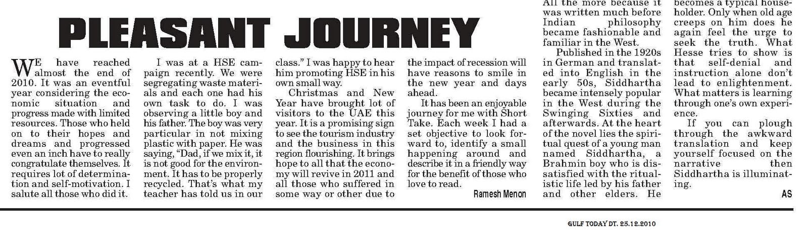 Short Take – GULF TODAY – Dt. 25.12.2010 – Pleasant Journey