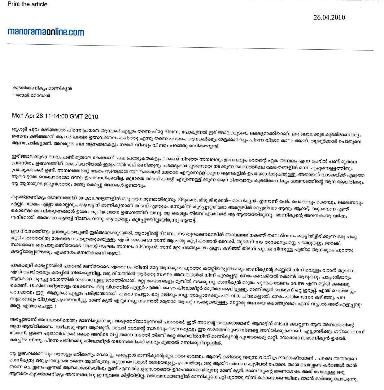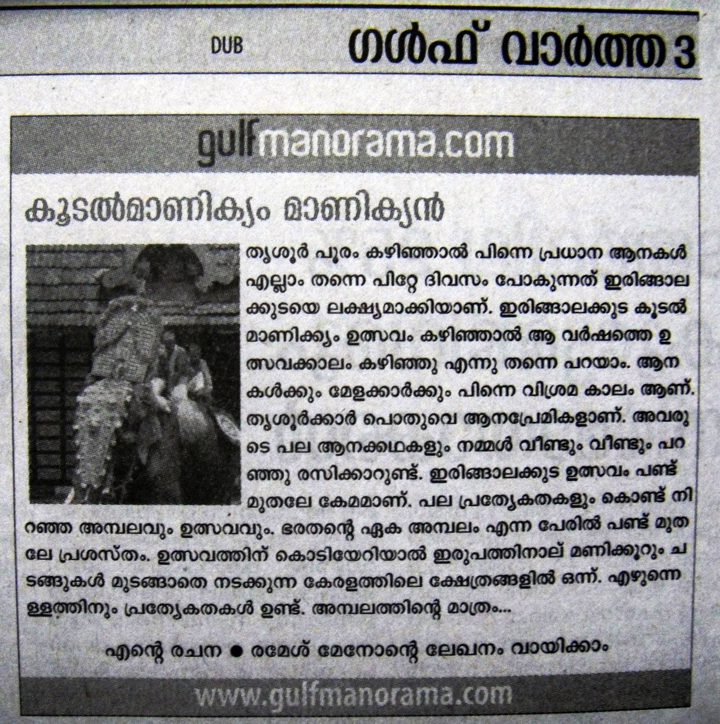 My Creatives – Koodalmanikyam Manikyan – Malayala Manorama Dt. 26.04.2010