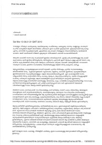 My thoughts – Malayala Manorama online – 19 March 2010 – Bhashayum Samskaravum