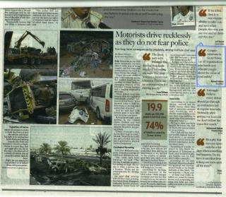 All for road safety – Letters to the Editor -Khaleej Times Dt. 01.10.2011
