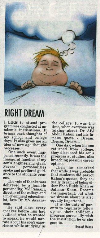 Right Dream – Short Take – Gulf Today Dt. 08.10.2011