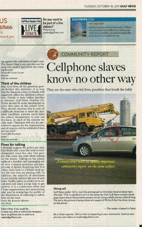 Fines for talking – GULF NEWS Dt 18.10.2011 – Letters to the editor