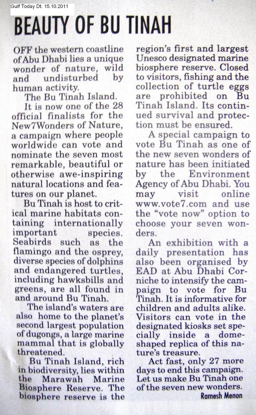 Beauty of Bu Tinah – Short Take – Gulf Today Dt. 15.10.2011