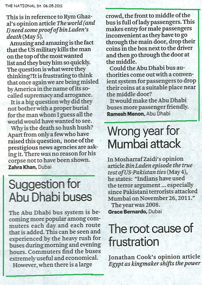 Suggestion for Abu Dhabi buses – My Letters – THE NATIONAL Dt 06.05.2011