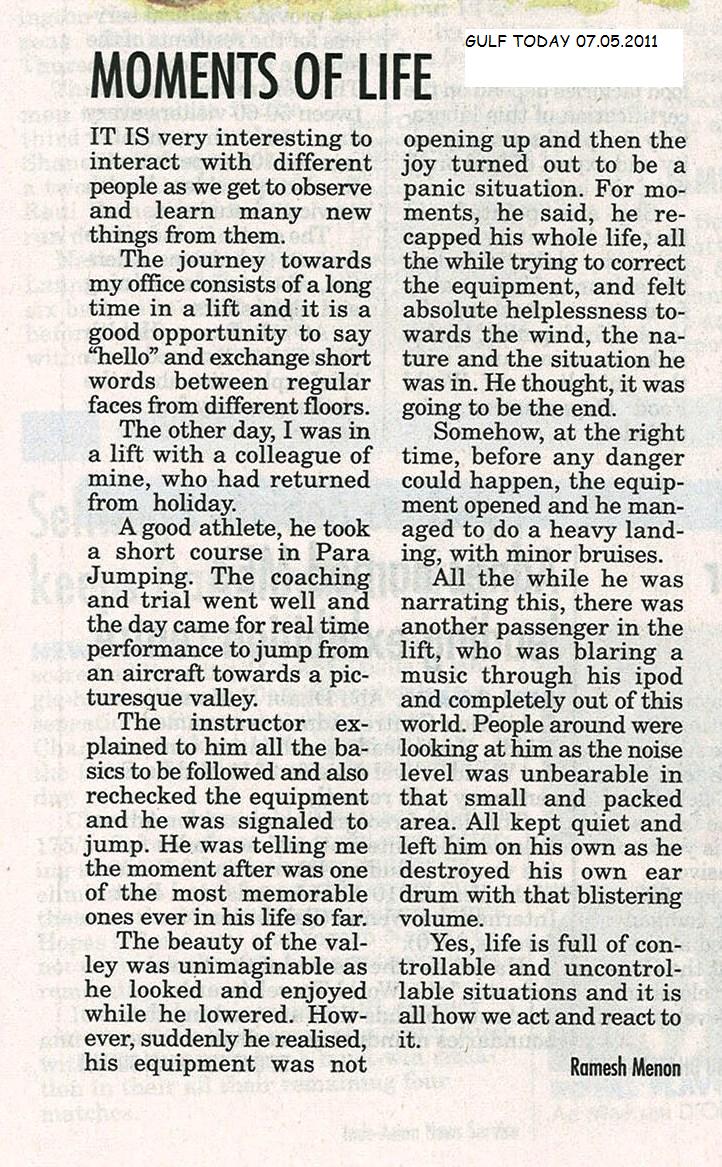 Moments of life – Short Take – Gulf Today – Dt. 07.05.2011