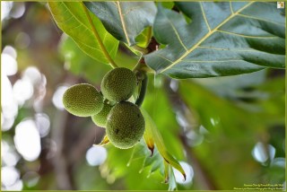 The Hawaiian staple food called poi, made of mashed taro root, is easily substituted for, or augmented with, mashed breadfruit. The resulting “breadfruit poi” is called poi ʻulu. In Puerto Rico, breadfruit is called panapen or pana, for short and in some in-land regions it’s also called mapén.Pana is often served boiled with a mixture of sauteed bacalao (salted cod fish), olive oil and onions. It is also served as tostones or mofongo. In the Dominican Republic, it is known by the name buen pan or “good bread”. Breadfruit is also found in Indonesia and Malaysia, where it is called sukun. In the South Indian state of Kerala and coastalKarnataka, especially on the sides of Mangalore, where it is widely grown and cooked, it is known as kada chakka or seema chakka and deegujje, respectively. In Belize, the Mayan people call it masapan.